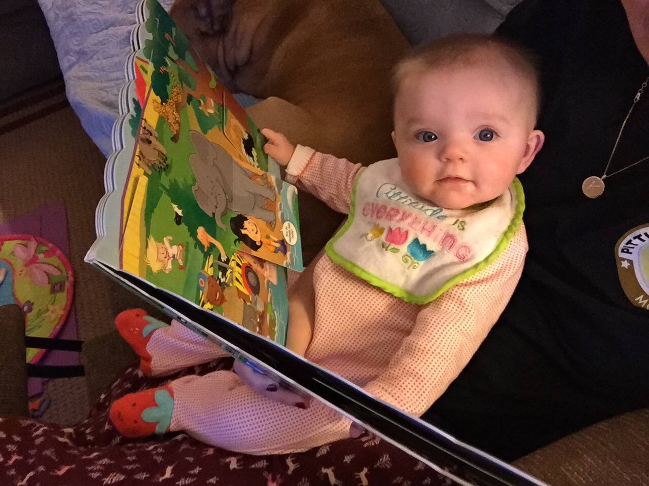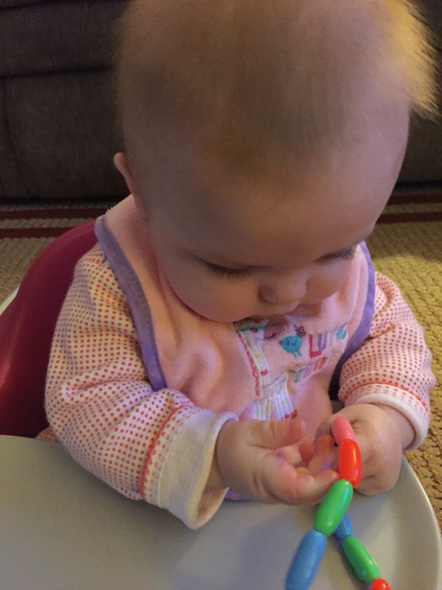 Kayla is now 5 months and is playing more and more. I love watching her use both of her hands to reach for things…those little chunky wrists. 🙂 She puts everything into her mouth right now and it’s so darn cute. She loves to talk and “play” scream too..such a fun baby! I just updated her baby book and it is amazing to see how many firsts she has and to be able to witness it all. I feel so blessed to be her mommy. Here are some fun pics: